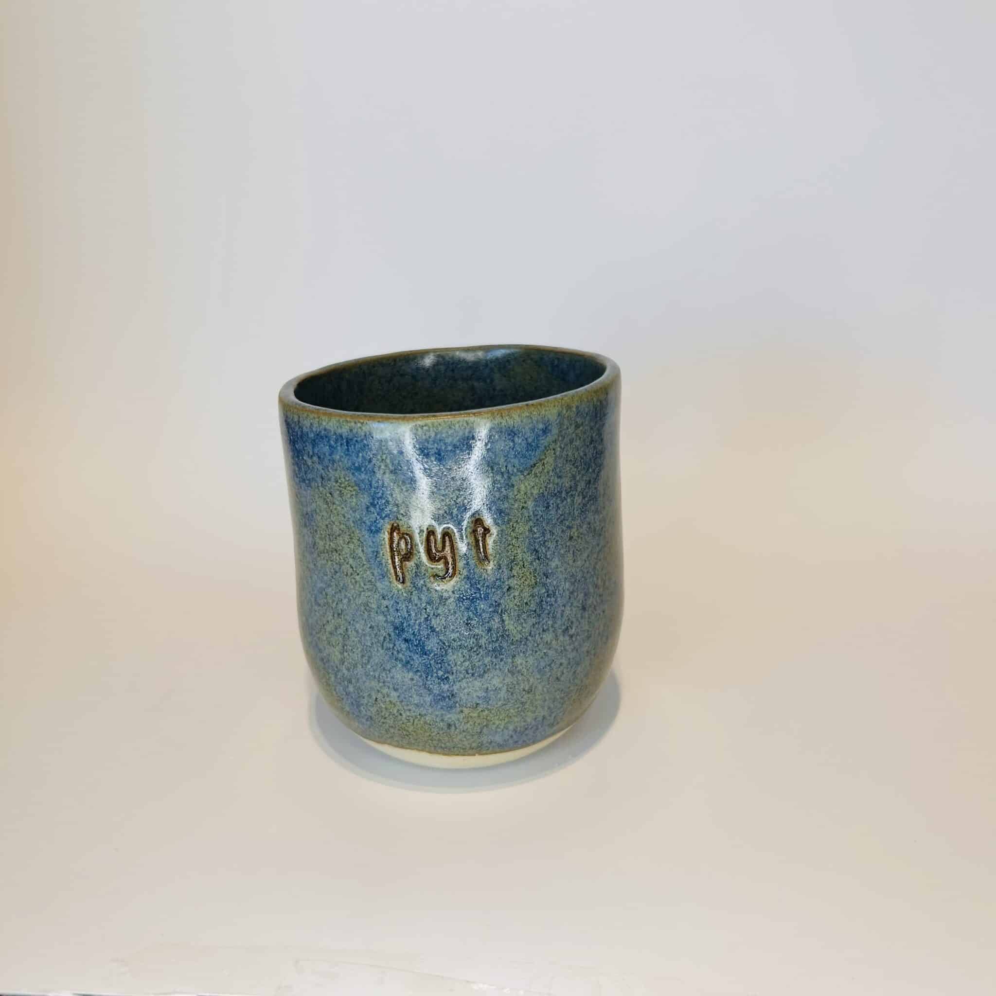 Krus m/tekst “pyt” blå
